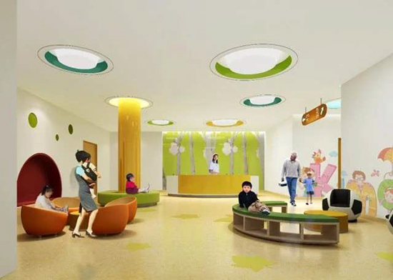 在候診室、兒童活動空間里可較多地使用大面積暖色調(diào)來讓兒童們感覺溫暖、有趣,消除他們的恐懼感,化解他們對治療產(chǎn)生的抵抗情緒,地面可采用暖黃色,黃色可令人愉悅,激發(fā)人的活力。