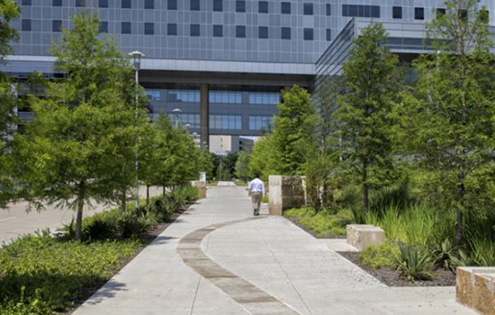 這些花園能讓醫(yī)院?jiǎn)T工、患者及其家屬、探訪者親近自然,并有效緩解不良情緒,釋放壓力,同時(shí)還為人們提供一條從醫(yī)院通往城市區(qū)域的人行道。這個(gè)醫(yī)院和區(qū)域設(shè)計(jì)在技術(shù)先進(jìn)、易進(jìn)入和修復(fù)環(huán)境下提升了臨床護(hù)理、教學(xué)和研究性能。